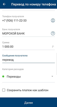 Для осуществления перевода необходимо указать только номер телефона получателя